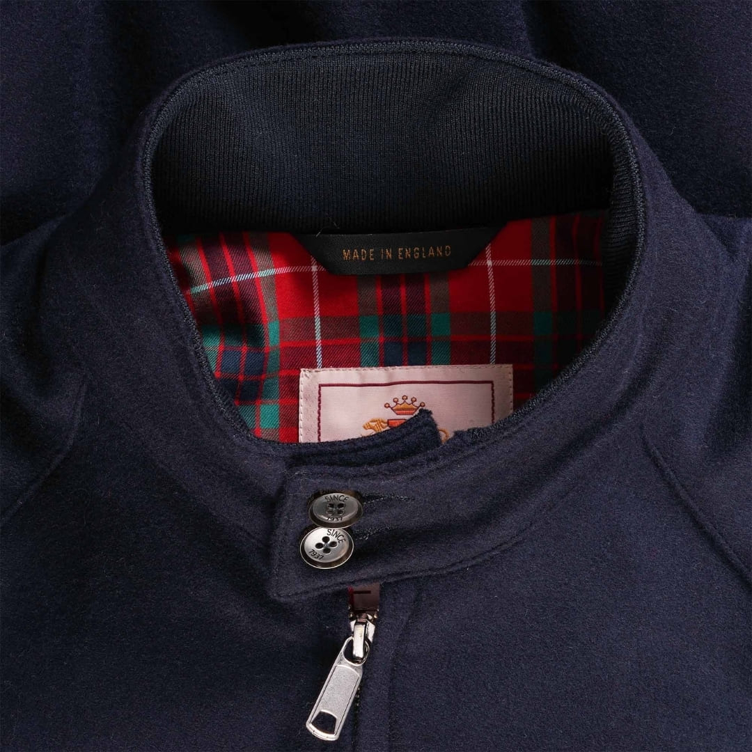 Baracuta G9 Harrington Melton Wool Jacket Deep Blue, order at BeauBags, Authorized International Baracuta Dealer and your Baracuta specialist in Europe. Personal & expert advice | Europe's largest collection | Immediately available | Free delivery & return | 60-day return policy.