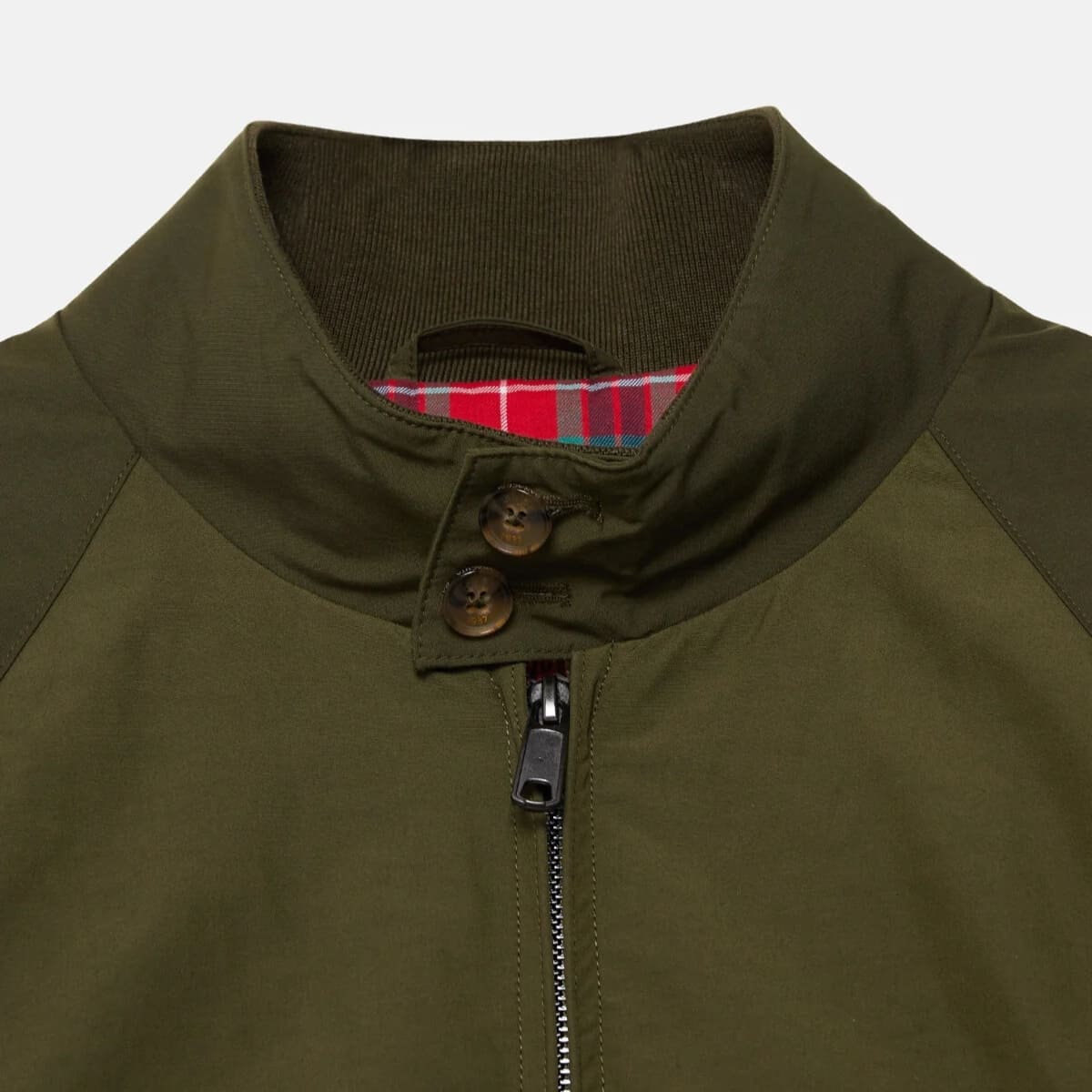The classic design, featuring Fraser Tartan lining, raglan sleeves, and a double zip, ensures a timeless look and freedom of movement ideal for everyday wear, commuting, or a weekend getaway. Practical details such as slanted side pockets with Baracuta buttons, ribbed cuffs and waistband, and an internal pocket for valuables make this jacket as functional as it is stylish.