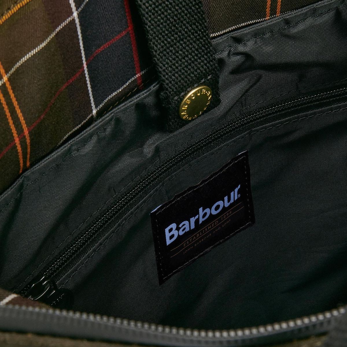 | Features | >Crafted from robust weatherproof waxed cotton >Barbour tartan lining >Trim: 100% Polyester >Zip closure >Fold-over flap with buckle >Large compartment >Zipped inner pockets safeguard valuables >Padded laptop compartment >Front pocket with zipper >Two slip pockets >To be carried by hand or on the shoulder >Perfect size for work or school >Full height: (before turn down) 68cm, (with turn down) 51cm, Width: (across top) 41cm, Depth 15cm >Woven Barbour logo |
