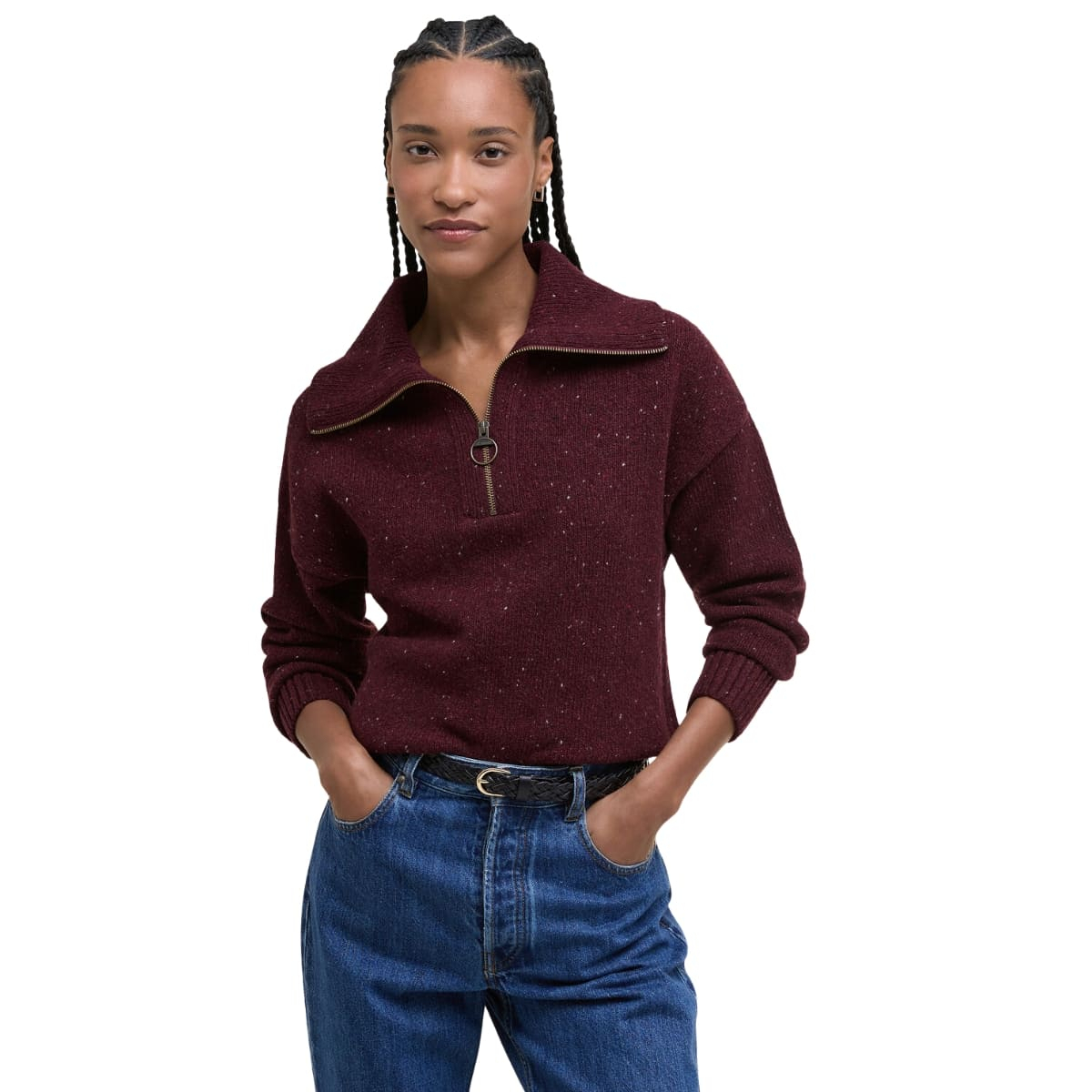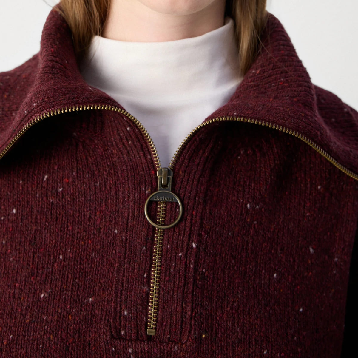 Barbour Lavensdale Half Zip Knitted Jumper Black Cherry, order at BeauBags, Authorized International Barbour Dealer and your Barbour specialist in Europe. Personal & expert advice | Immediately available | Free delivery & return | 60-day return policy.