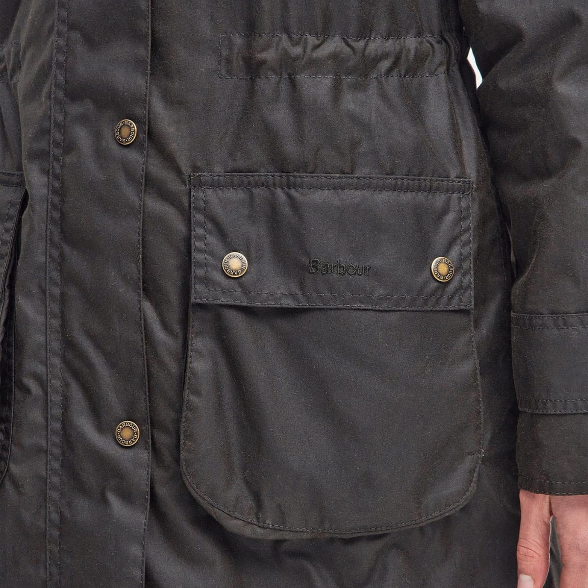 The Barbour Long Cannich Wax Jacket in Olive is perfect for women who combine style with functionality. This long parka is ideal for chilly days, rainy walks, and urban adventures. Its timeless fit makes it easy to wear over a sweater or blouse, paired with jeans and boots for a classic outdoor look. With feminine details and practical warmth, this is the go-to jacket for every stylish and active woman.