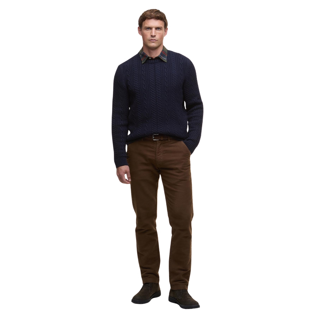 The Barbour Lowfen Cable Knit Jumper is a stylish sweater made from soft lambswool and cotton, featuring a classic cable pattern and crew neck. Warm, comfortable, and durable, it’s perfect for everyday wear. Its timeless design pairs easily with both casual and outdoor outfits.
