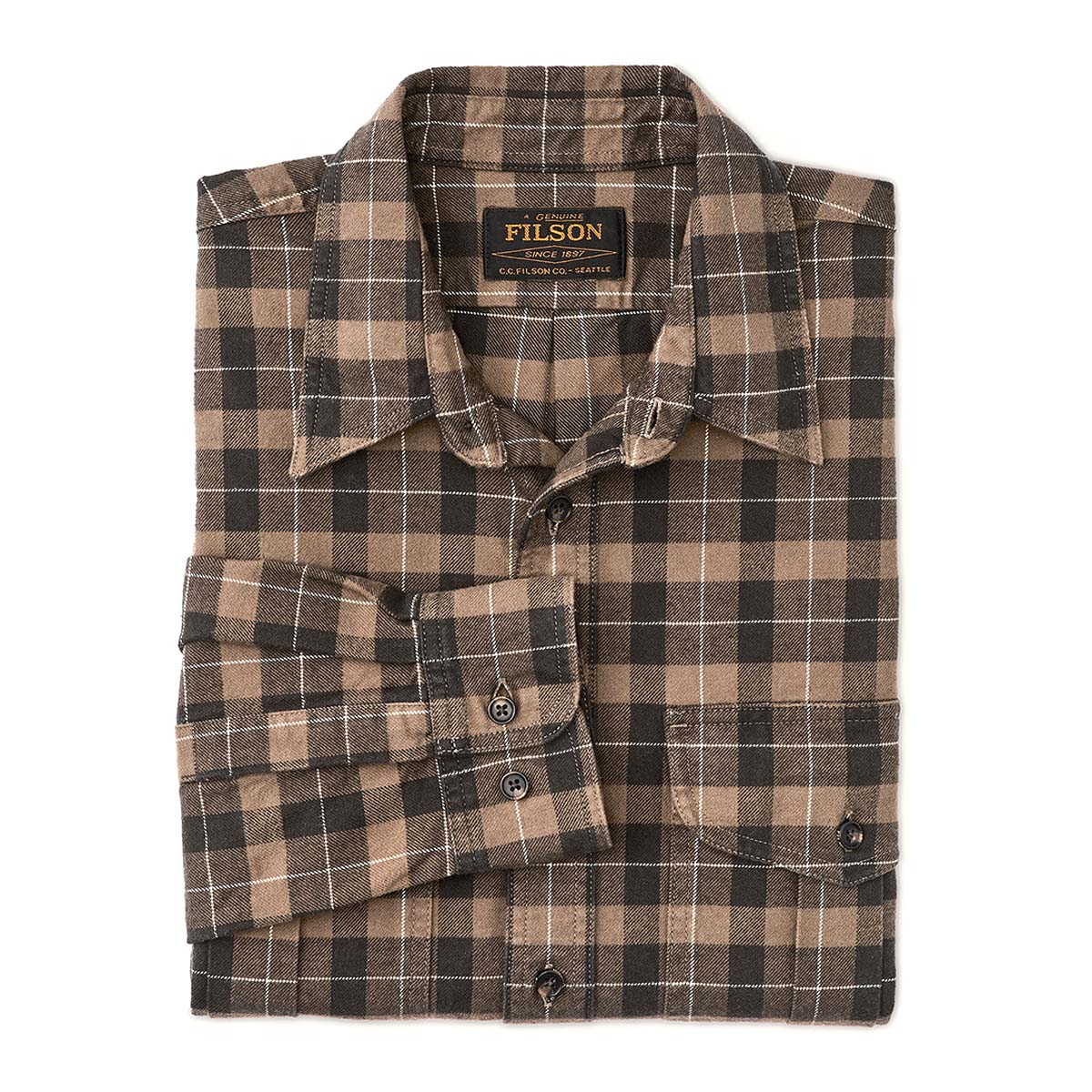 Filsons Alaskan Guide Shirt Light Brown/Peat/Multi Plaid, the mainstay trusted by bush pilots, sportsmen, ranchers and tradesmen for a quarter-century, has a proven track record that ordinary shirts can only dream of. This classic has earned its position at the core of Filsons business for very good reasons–it defines its genre and provides unfailing comfort and durability, season after season.