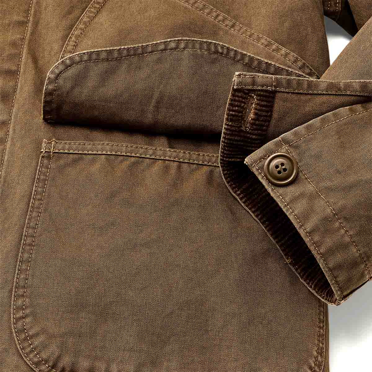 | Features | >Strong 10.5-oz. canvas >Button front >Button-adjustable cuffs >Combination hand/flapped cargo pockets >Corduroy-lined collar >Wrist-length |