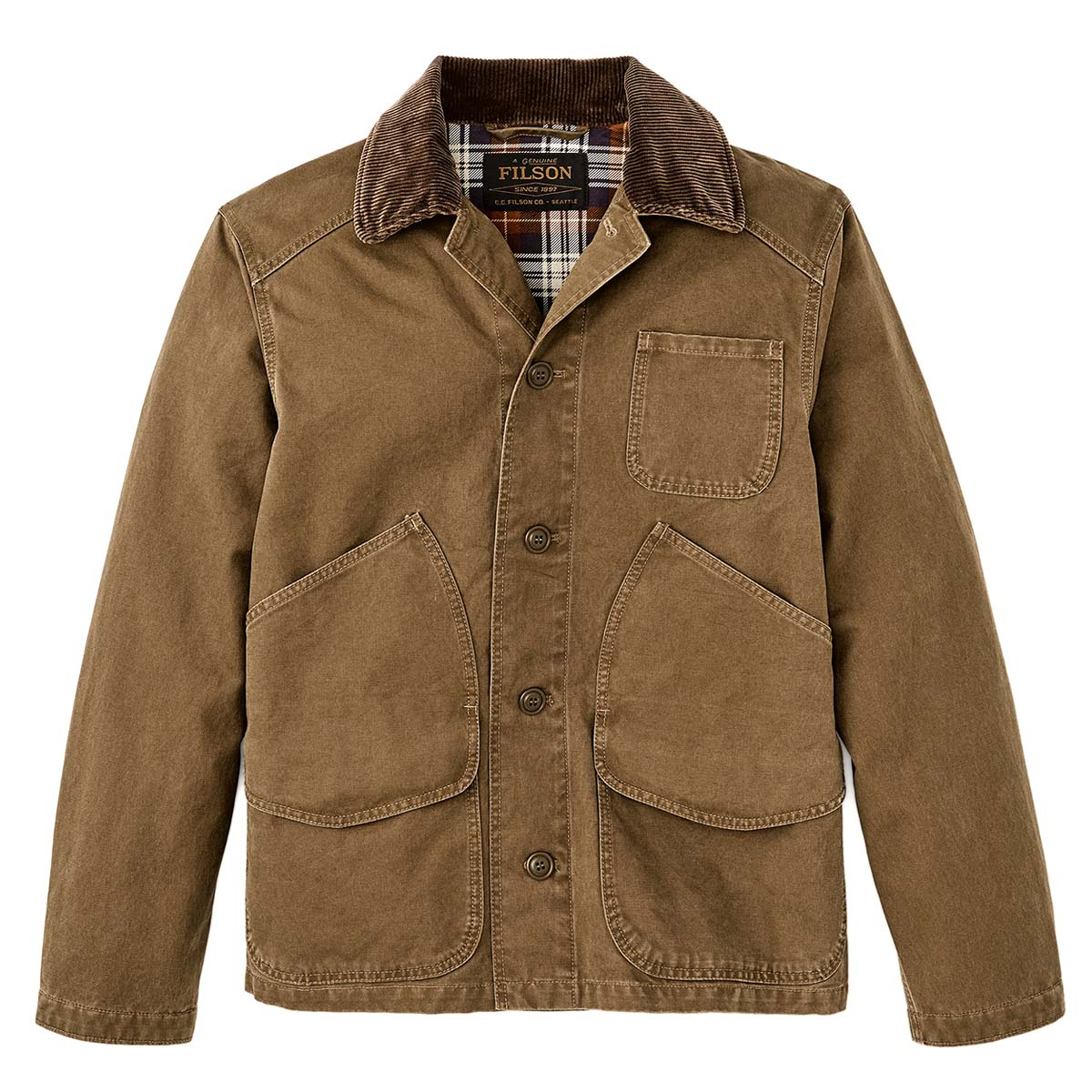 The Filson jacket is made from sturdy 10.5 oz. canvas, tightly woven for excellent tear strength and wind resistance. Lighter than many other Filson jackets, it perfectly fills the gap between heavy winter coats and lighter mid-layer jackets – ideal for daily use and outdoor adventures in mild temperatures.