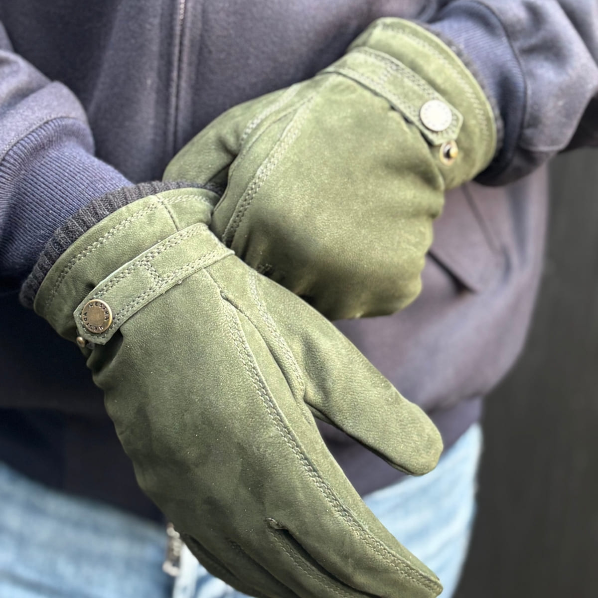 With a ribbed wool cuff and leather wrist strap with press stud, the gloves provide a perfect fit, while the pre-curved design ensures optimal freedom of movement and comfort. Versatile and practical, they are ideal for both urban wear and outdoor adventures in the countryside or forest.