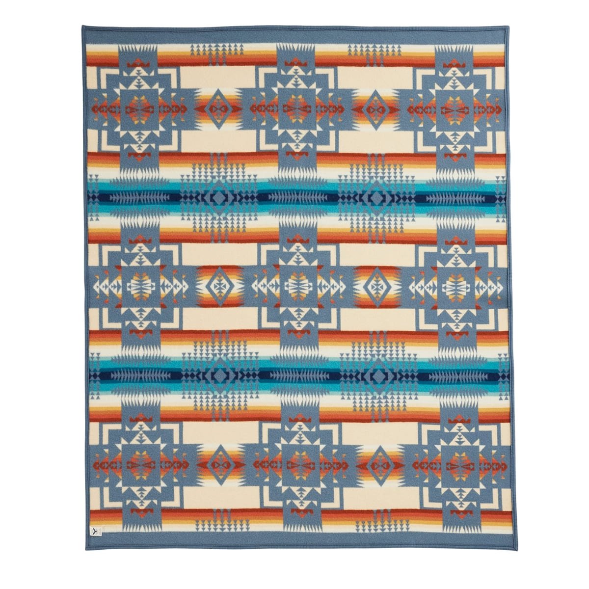 Designed early in the 1920s, the Chief Joseph design continues to be one of Pendleton’s most popular blankets. It commemorates the heroism of one of the Northwest’s greatest Nez Perce warriors, Chief Joseph. His Nez Perce name was “Hin-mahtoo-yah-lat-kert”, which means Thunder Rolling Down Hill.